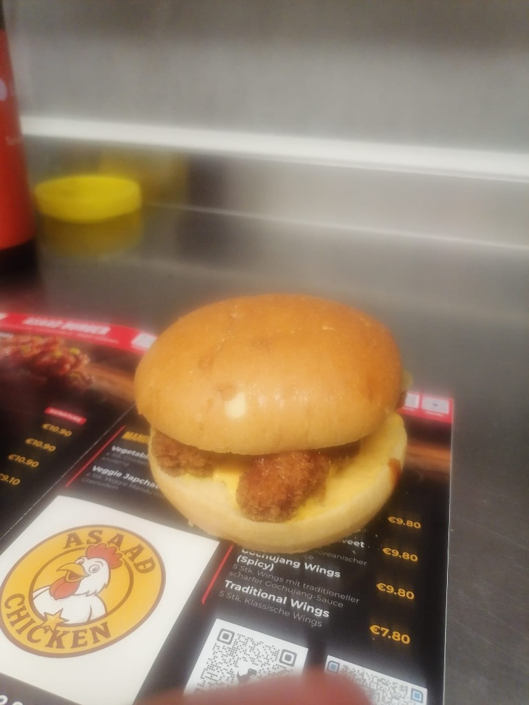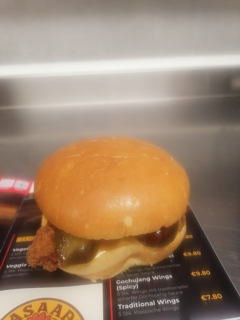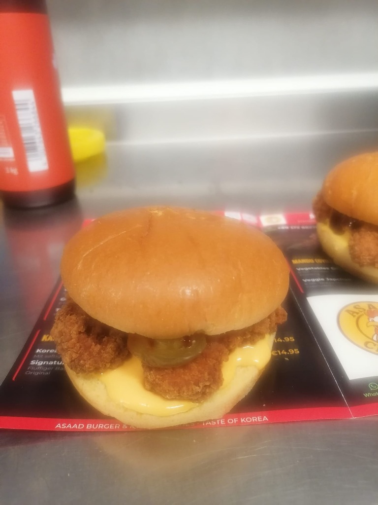 €14.95Fluffiger Bao Bun mit 2x Korean Chicken Filets, koreanisch-scharfer Mayo, Original
