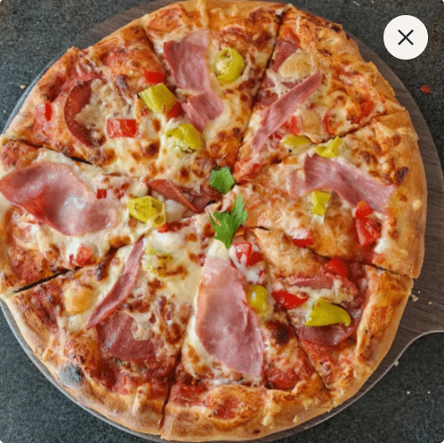 €10.00mit Salami, Schinken, Pilzen, Paprika