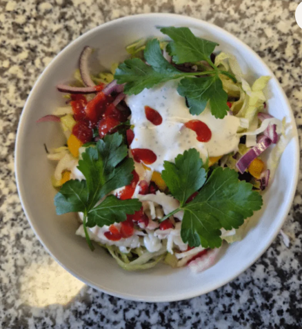 €6.00Zwiebeln, Tomaten, Rotkraut, Weißkraut und Hirtenkäse, Joghurtsoße und Cocktailsoße